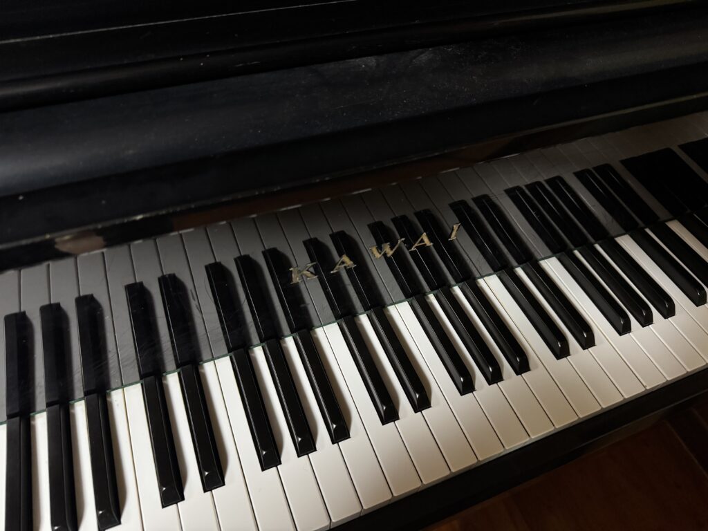 お孫さんたちのご自宅には、このピアノよりも新しいアップライトピアノがあるそうです。「このピアノ、持ってっていいよ。あげるよ。」と進めたものの、「古いから嫌だ」ということで、別のピアノを1台買ったそうです。