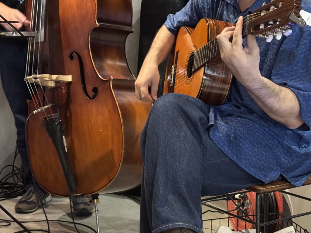 休憩中にギターについて話を聞くと、さぞいい楽器を使っているんだろうという予想をが外れて、購入した値段を聞いてびっくり。もちろん音が気に入った上で選んだそうですが、ハイグレード品でもない、名高いブランド品でもない、素朴な一本だったそうです。自分が使っているバイオリンも、そんなに高級なものでもない国産のお手頃品であることをお話ししたら、ベーシストさんも似たような類の楽器を持ってらっしゃるとのことで、楽器の話しが楽しかったです。