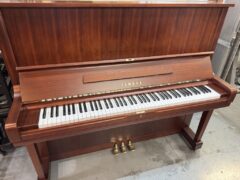 1970年代前半のスタンダードモデルで、サペリ木目の外観がうつくしいピアノです。音色も安定していて、弾いて楽しいピアノです。